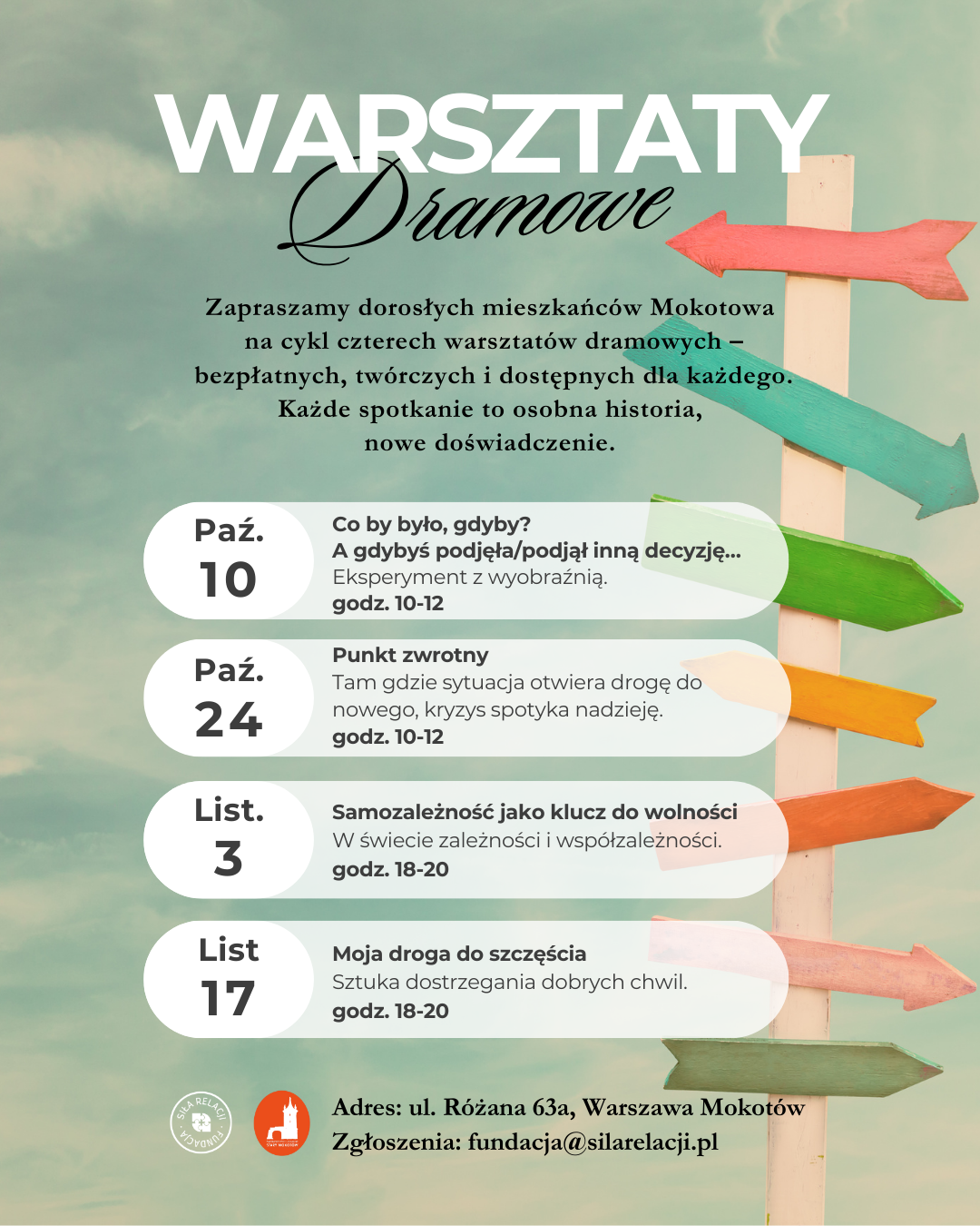 ? Czasem potrzebujemy przestrzeni, by zatrzymać się w biegu i spojrzeć na swoje życie z innej perspektywy. Warsztaty dramowe to okazja, by poprzez zabawę, wyobraźnię i twórcze ćwiczenia przyjrzeć się własnym wyborom, relacjom i marzeniom. To nie teoria, lecz doświadczenie – spotkanie z innymi i z samym sobą w atmosferze ciekawości i otwartości.